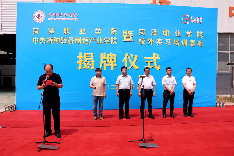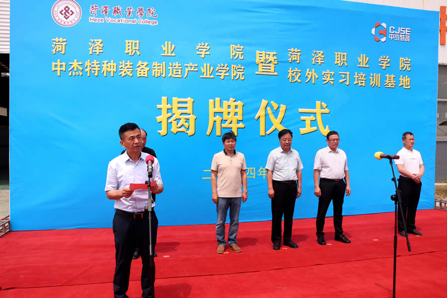 為深化產(chǎn)教融合、加強(qiáng)校企合作,實(shí)現(xiàn)學(xué)生技能培養(yǎng)與行業(yè)市場需求的高度契合,為行業(yè)與社會培養(yǎng)輸送源源不斷的高素質(zhì)技能人才,5月20日,“菏澤職業(yè)學(xué)院中杰特種裝備制造產(chǎn)業(yè)學(xué)院”暨“菏澤職業(yè)學(xué)院校外實(shí)習(xí)培訓(xùn)基地”揭牌儀式隆重舉行。菏澤職業(yè)學(xué)院黨委副書記、院長袁宗建、菏澤市企業(yè)家協(xié)會常務(wù)秘書長鄧顯杰、菏澤魯西新區(qū)管委會副主任、文化衛(wèi)生服務(wù)中心主任孔魯民、山東中杰特種裝備股份有限公司董事長張春雨、菏澤職業(yè)學(xué)院黨委委員、宣傳部部長郭志合出席揭牌儀式;菏澤職業(yè)學(xué)院師生代表,中杰特裝員工代表等100余人參加活動。