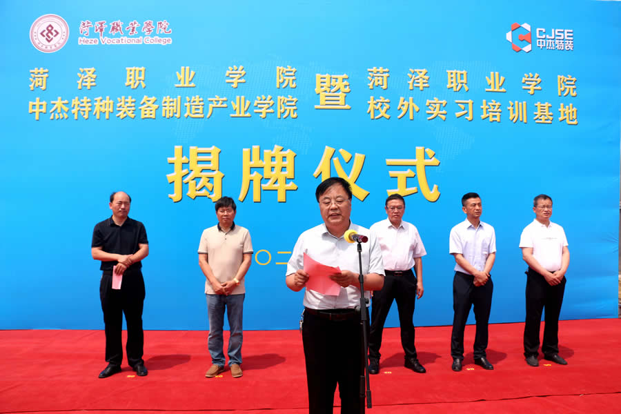 隨后,在與會(huì)全體的矚目與期待中,“菏澤職業(yè)學(xué)院中杰特種裝備制造產(chǎn)業(yè)學(xué)院”、“菏澤職業(yè)學(xué)院校外實(shí)習(xí)培訓(xùn)基地”正式揭牌,宣告了制造產(chǎn)業(yè)學(xué)院的正式成立,標(biāo)志著菏澤職業(yè)學(xué)院與山東中杰特種裝備股份有限公司的合作共建邁出了新步伐,開(kāi)啟了產(chǎn)教融合、協(xié)同育人的新紀(jì)元。